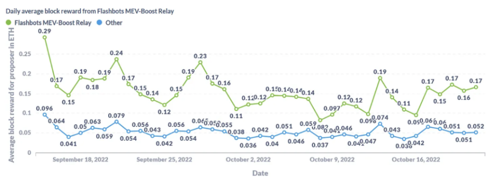 为什么使用 Flashbots?验证者这样做的原因很简单,因为对他们来说,质押奖励更有利可图。Flashbots 的软件在提议者和构建者之间更公平地分配 MEV 价值,而不是在大型矿池和搜索者之间共享。Flashbots所做的是通过创建一个透明、公开的价格发现市场,来阻止搜索者和矿工之间的内幕勾结市场。据 Hasu 称,使用 MEV-Boost 将验证者的合并后质押奖励提高了 135%。