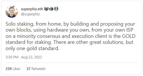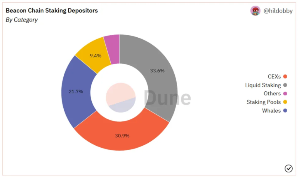 最后,尽管持有过多 ETH 的流动质押协议非常令人担忧,但值得考虑一下,假设不存在 Lido DAO。在那样的情况下,ETH 将被已经持有大量 ETH 的 Coinbase 和 Kraken 等在政治上更脆弱的实体质押,这种情况将比现状糟糕得多。